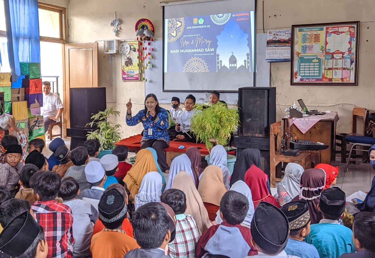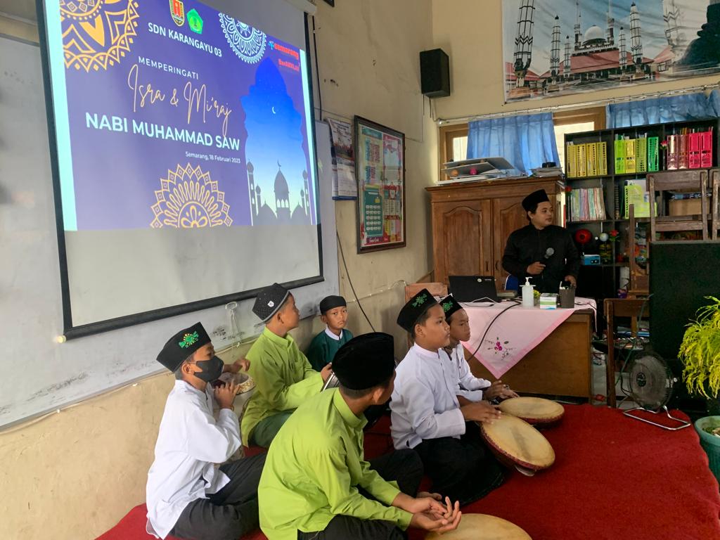 Semarang - SDN Karangayu 03 Semarang menggelar acara Peringatan Isra Mi’raj Nabi Muhammad SAW 1444 H pada hari Jumat, 17 Februari 2023. Peringatan ini dilaksanakan lebih awal karena pada tanggal 18 Februari 2023 bertepatan di hari Sabtu yang merupakan hari libur sekolah. Ini dikarenakan SDN Karangayu 03 menerapkan sistem sekolah 5 hari.