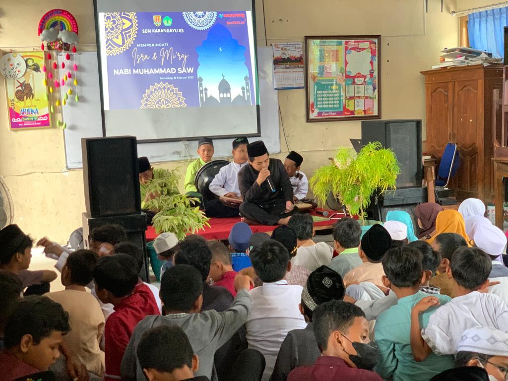 Dalam sambutannya, kepala SDN Karangayu 03, Ibu Tri Fena Susi Agustin, S.Pd. berharap melalui peringatan Isra Mi’raj ini semoga peserta didik dapat mengambil pelajaran nabi Muhammad SAW dan menjunjung nilai toleransi antar umat beragama.”