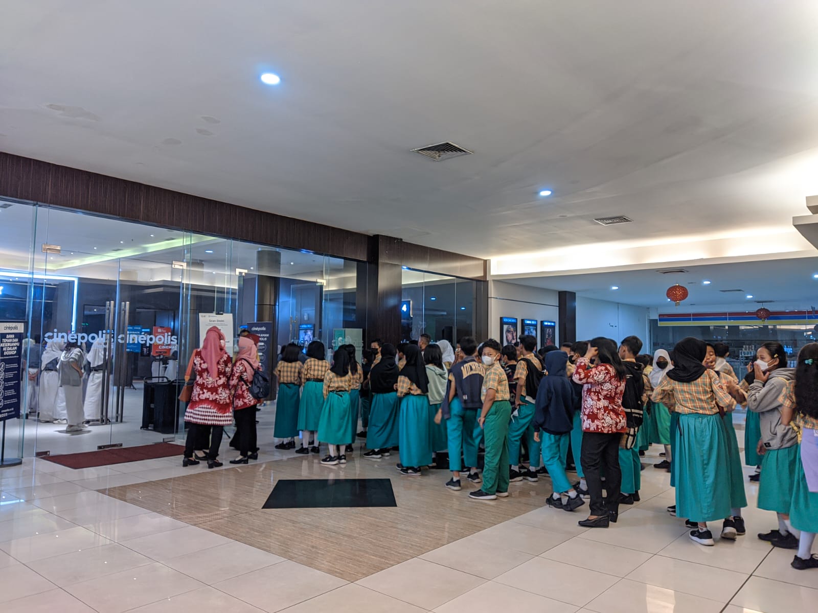 Semarang-Sejumlah siswa SDN Karangayu 03 Semarang melakukan pembelajaran di luar kelas atau oting class dengan menonton film anak berjudul Jo Sahabat Sejati. Kegiatan ini dilaksanakan dengan menonton film bersama di bioskop Cinemax Java Mall Semarang. Kegiatan ini pertama kali dilakukan setelah sebelumnya ditiadakan karena pandemi covid19.