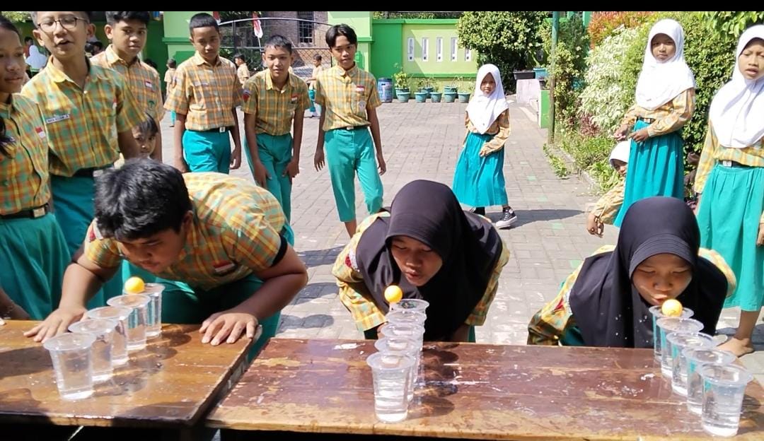 Untuk kelas 1 adalah lomba roll kardus, kelas 2 lomba memasukkan pensil ke dalam botol, kelas 3 lomba makan krupuk, kelas 4 jembatan kertas, kelas 5 mengaitkan caping, kelas 6 tiup bola pingpong. Masing-masing guru memandu lomba.